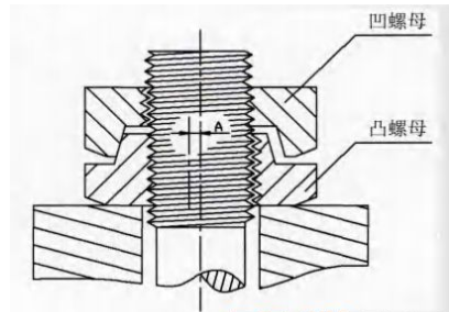 HARDLOCK是雙螺母(見(jiàn)圖3),內(nèi)螺母外側(cè)設(shè)有偏心的突起;外螺母為普通螺母結(jié)構(gòu),其內(nèi)側(cè)設(shè)有同心的凹槽;外螺母?jìng)渚o時(shí)內(nèi)螺母的外側(cè)凸起與螺栓不同心,內(nèi)螺母的偏心突起與螺栓受到外螺母的擰緊擠壓產(chǎn)生徑向力,相當(dāng)于在螺紋間隙中增加了鍥子,螺紋全方位鎖緊。